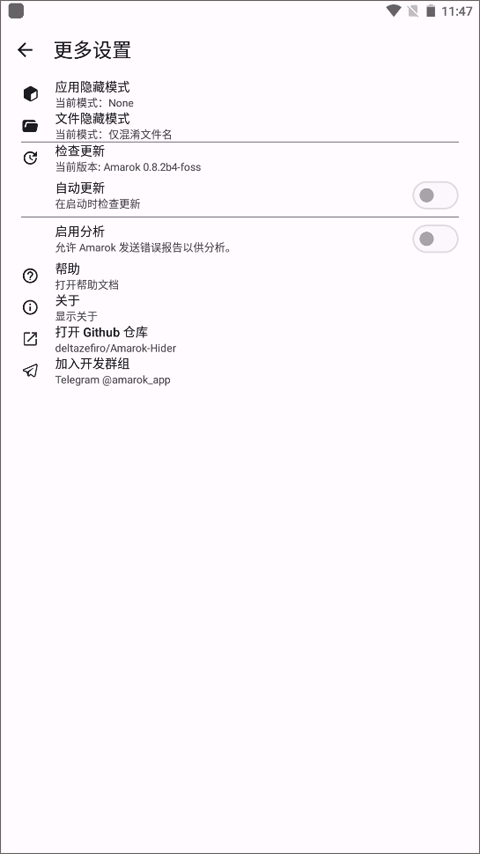 Amarok是一款界面清爽、功能强大的应用加密工具。这款软件支持用户无需root权限即可轻松一键隐藏隐私内容,再也不用担心在使用手机时遭到隐私泄露,有需要的小伙伴不妨使用。