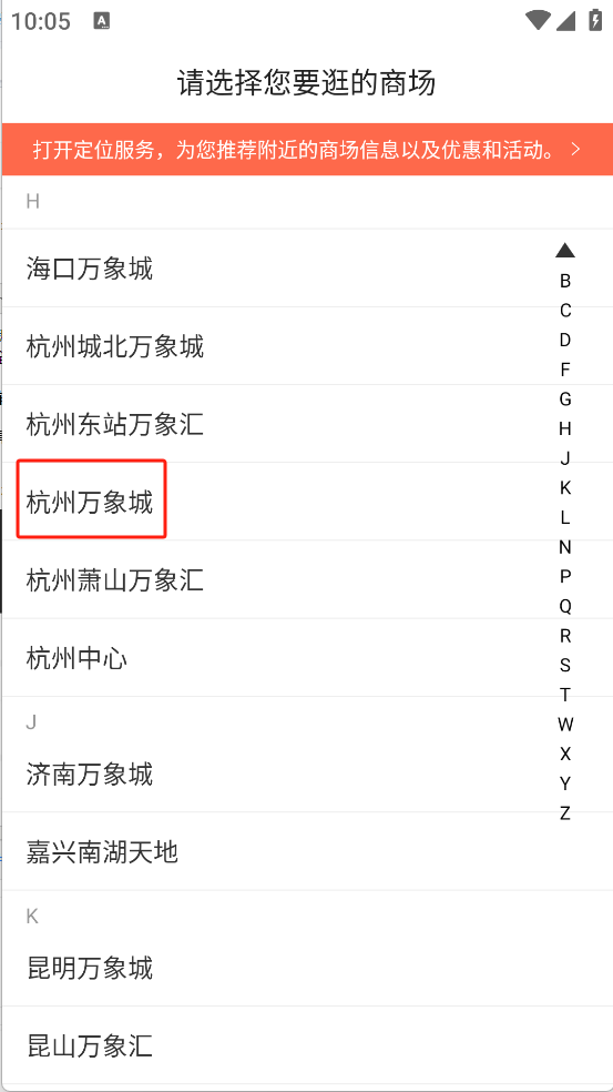 首先需要在本站下载并安装一点万象App,接着打开该应用进入主界面,选择定位为“杭州万象城”。
