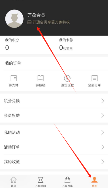 成功注册后回到App的“我的”页面,在顶部找到“万象会员”并点击。