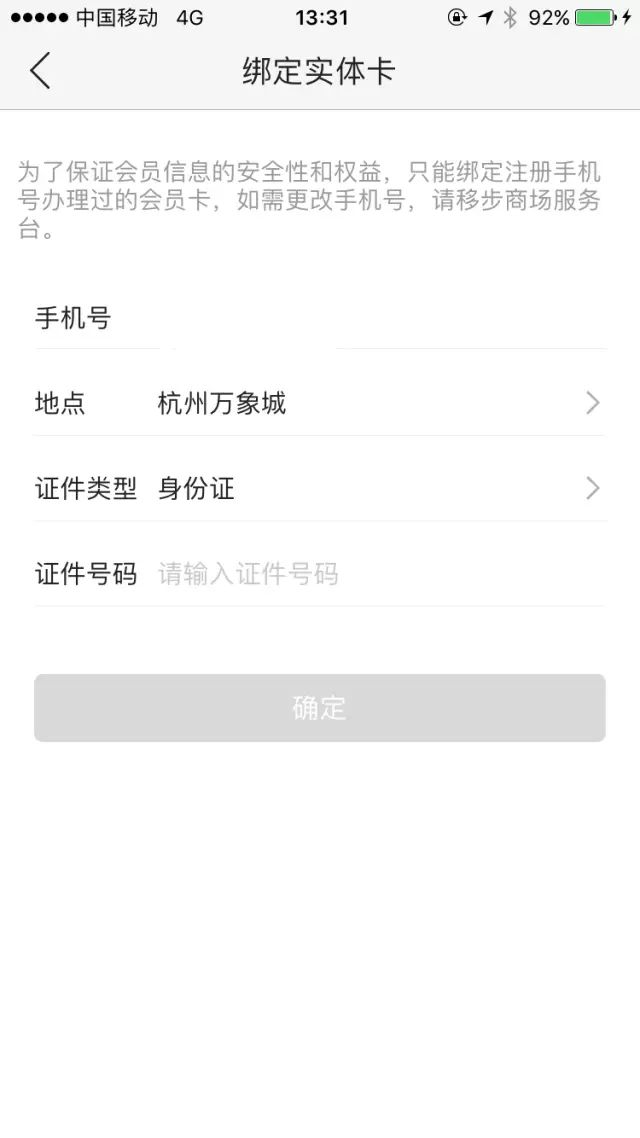 完成绑定操作:提交身份证信息后,系统将自动对信息进行验证,并完成会员卡的绑定流程。