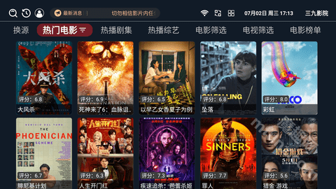 悟空影院是一款融合电视直播与影视剧点播功能的综合电视影视应用。该应用设有手机版和TV版,值得一提的是,安卓手机同样可以正常运行这款软件。进入首页,便能一目了然地看到其涵盖的各类影视内容,像全网热播的电影、电视剧、综艺以及动漫等应有尽有。而且,所有影视资源均为免费,只需点击即可进入播放界面在线观看!