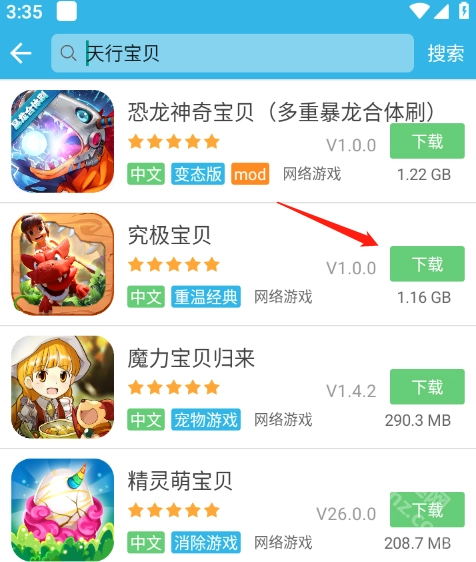 然后在搜索结果里挑选出需要的版本,再点击它右边的按钮。