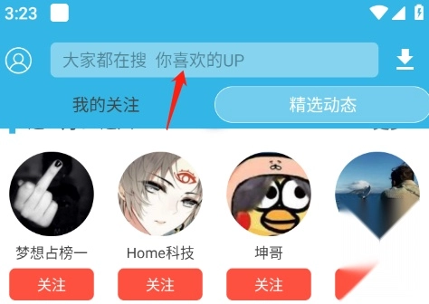 最后,在弹出的搜索框中输入up主的名字,就能找到想要关注的up主了。