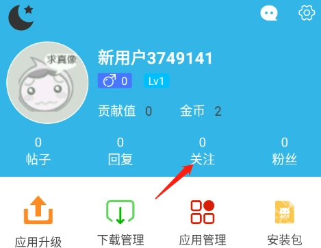 进入软天空首页,点击左上角头像图标。