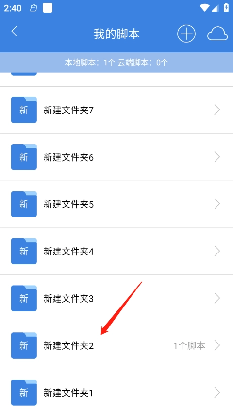 在录制状态时,进入刚创建的脚本文件夹,点击加号按钮来添加一个新的脚本。