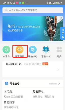 打开船e行,点击海事慧眼