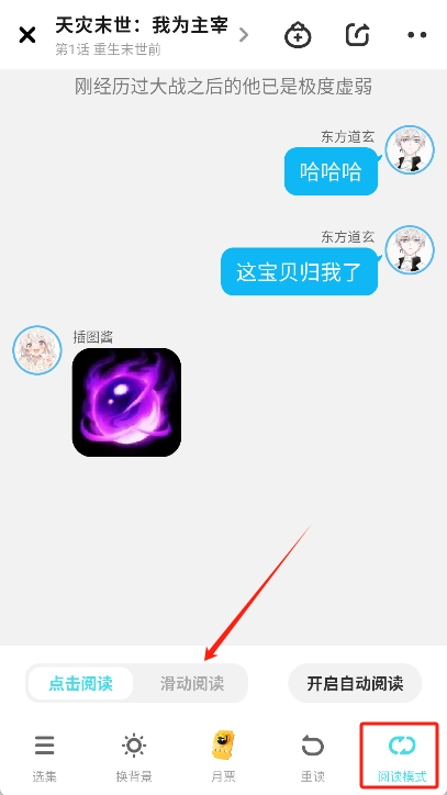 在小说阅读页面点击底部的【阅读模式】按钮,就能根据自己的喜好设置【滑动阅读】功能了。
