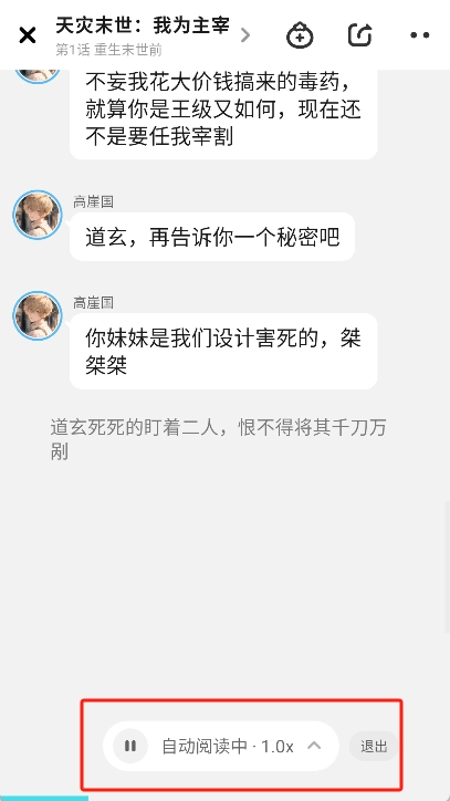 在阅读页面点击【阅读模式】,开启【自动阅读】功能后,系统会自动翻页,不需要手动操作。