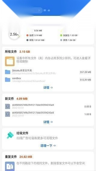 打开快捷导航后,依次进入工具板块和文件分析器功能。该功能可呈现sdcard的总容量、已用容量与可用容量,同时展示各个文件夹或文件的大小、占比,以及其包含的文件和文件夹数量;长按对应项目即可直接执行删除操作。点击地址栏,能够实现外置卡的切换。若点击目录分析选项,则会显示当前路径下图片、音频、视频、文档、安装包及其他类型文件各自所占的容量情况。