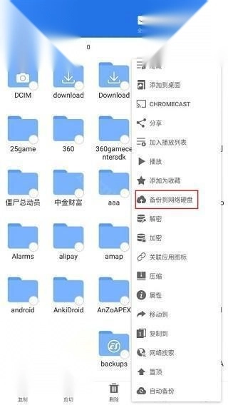 当您需要将文件备份到网络硬盘时,无需反复切换界面进行复制粘贴操作,只需长按文件,依次点击“更多”选项和“备份到网络硬盘”即可完成操作。系统会在网络硬盘中默认生成名为“XX的ES备份”的备份目录,您可以对该名称进行编辑,也能选择是否将其设为默认目录。