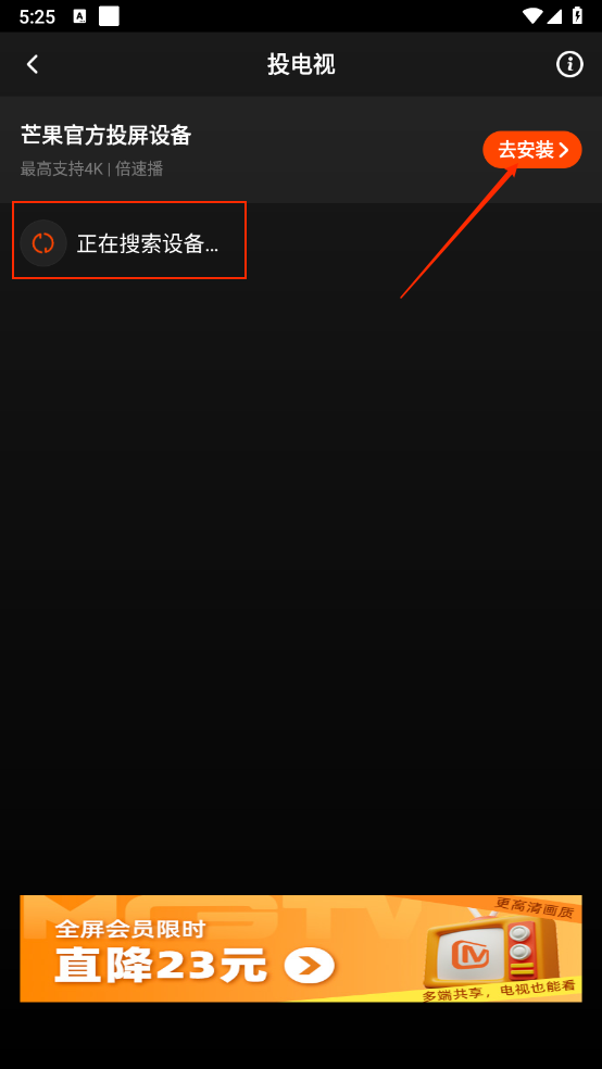 最后完成搜索连接就能开启投屏播放,也可以安装芒果的投屏设备。