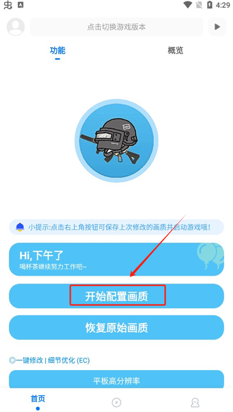 进入游戏后,在首页点击“开始配置画质”选项。