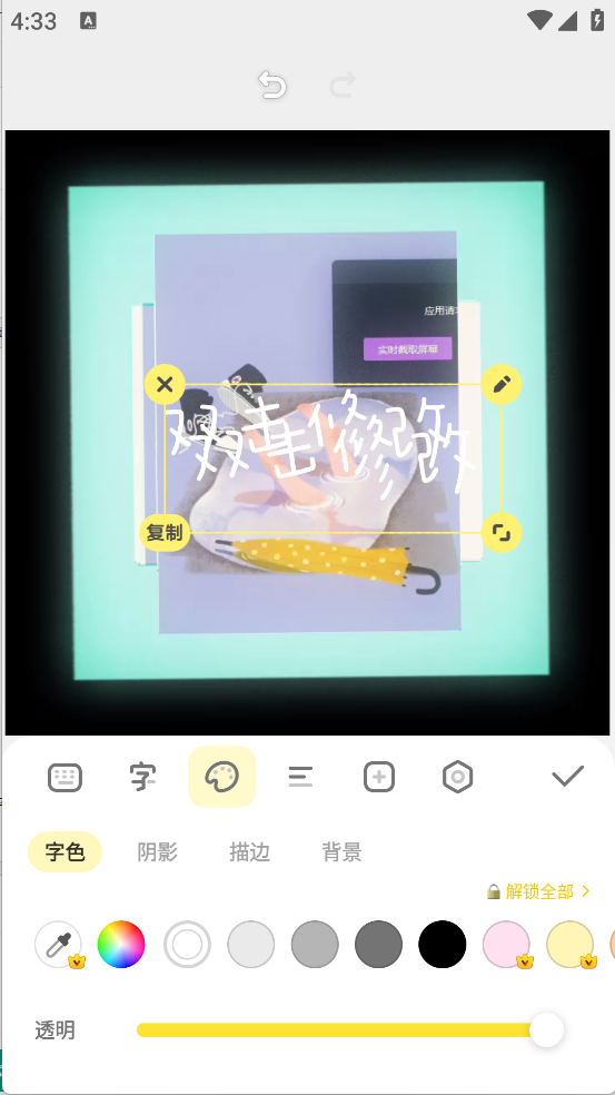文字编辑功能支持在图片上添加文字,还能对文字的字体、大小与颜色进行选择设置。