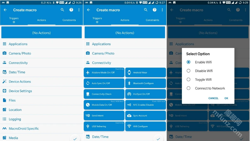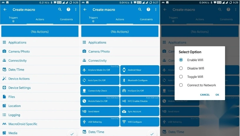 MacroDroid具备多样的自动化任务配置功能,例如依据特定应用程序开启或关闭Wifi、自动回复短信、借助NFC标签对设备进行设置等。