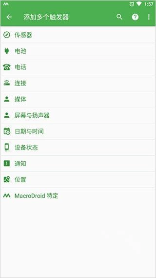 MacroDroid具备丰富的触发器条件,涵盖时间、位置、电池电量、设备状态等多种类型。用户能够依据自身的实际需求,挑选合适的触发器条件,并对相关参数进行设置,从而达成更为精准的自动化任务。