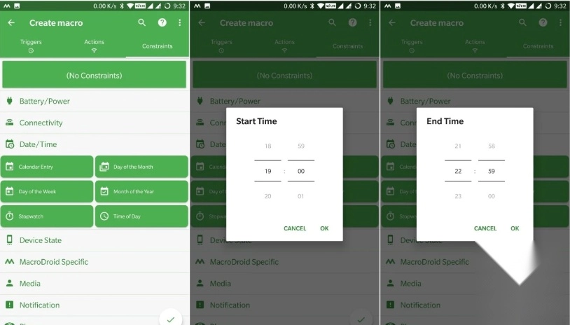 多种约束条件:MacroDroid提供了50余种限制条件,能满足用户在不同场景下的使用需求。这些约束条件可作为宏的额外防护机制,只有当手机触发条件达成且处于约束范围内时,MacroDroid才会执行预设的动作。