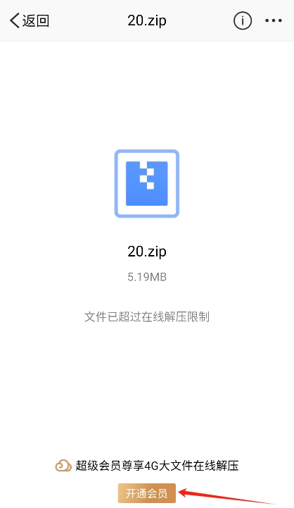 在线解压功能需要会员服务,若您非会员,需在线开通会员服务后方可使用。