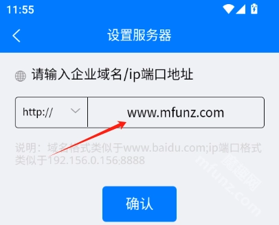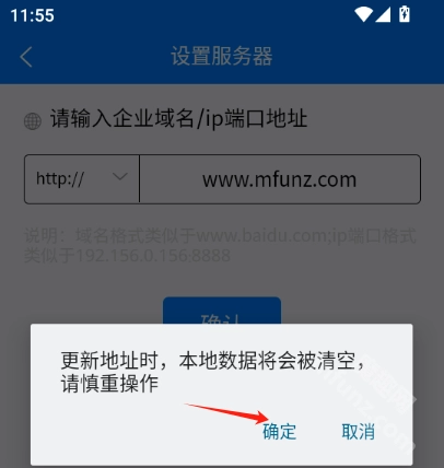 在搜索框中输入企业的域名或者IP端口地址,接着点击【确定】按钮。需要注意的是,IP端口的格式要像192.156.0156:8888这样,域名的格式则要类似www.xxxx.com。