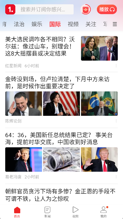 紧接着打开应用,在首页能看到系统通过算法推荐的新闻资讯。