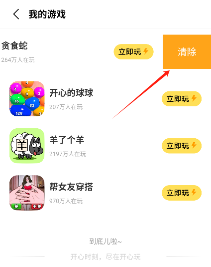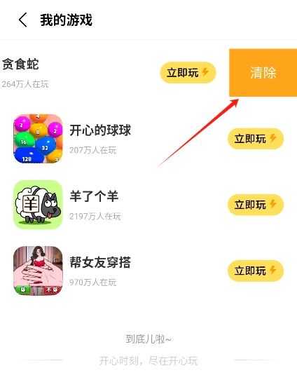 游戏管理:用户可以在我的游戏页面中管理已经游玩的的游戏,包括清除等操作。