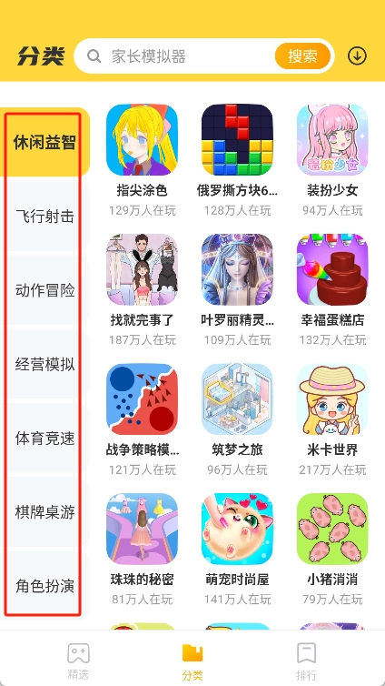 用户能够在分类界面里按照分类来浏览游戏,像休闲游戏、角色扮演类游戏等,这便是浏览与搜索功能的一部分。
