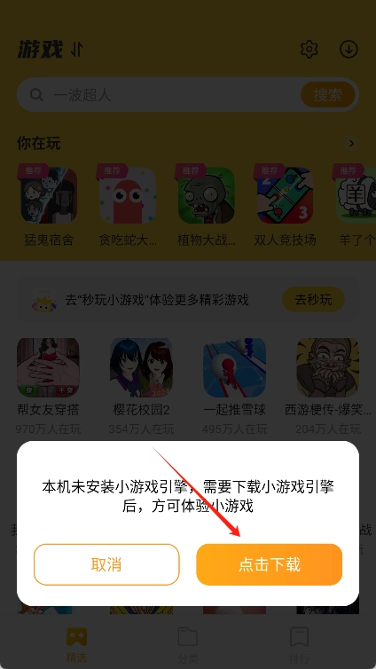 系统会依据用户的游戏偏好,智能推送妙趣十足的游戏,即点即玩,无需等待。