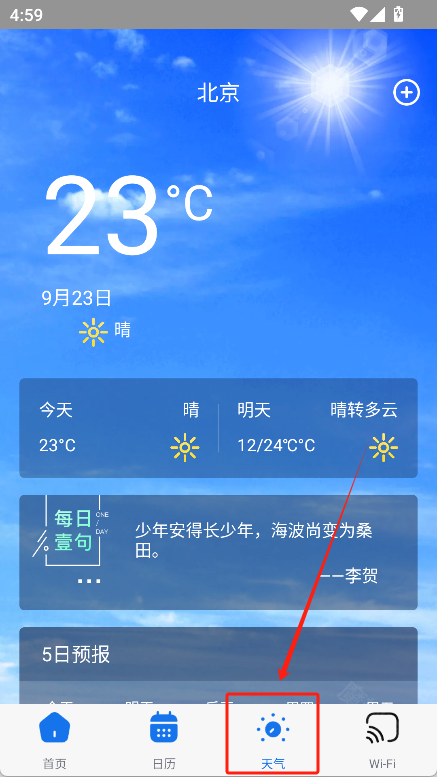 在“天气”模块里,我们为大家准备了未来5天的天气状况以及各类生活指数。