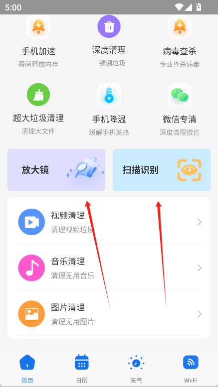 首页往下拉还能看到“放大镜”、“扫描识别”等功能