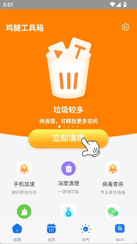 鸡腿工具箱是一款功能丰富且极具包容性的掌上系统工具应用。它不仅能快速检测手机的各项功能,还可以高效清理垃圾文件和释放内存空间。此外,该软件还具备计算器、尺子、指南针等实用工具的功能,用户通过鸡腿工具箱apk还能便捷地查询天气信息,其核心目标就是为用户带来更顺畅、更便捷的手机使用体验!