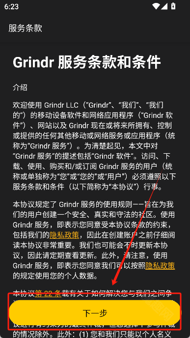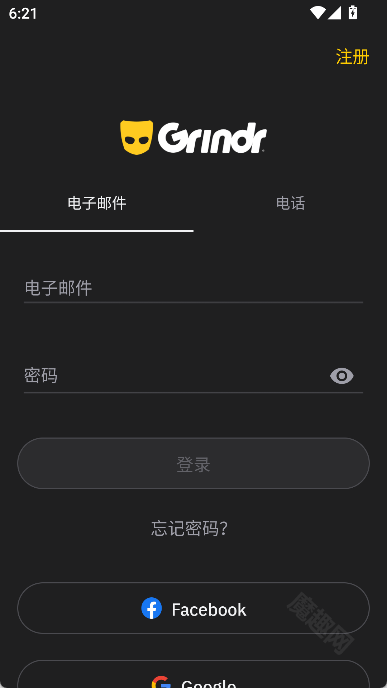 首先前往魔趣网下载并安装Grindr安卓版,打开应用后即可进入注册登录界面。