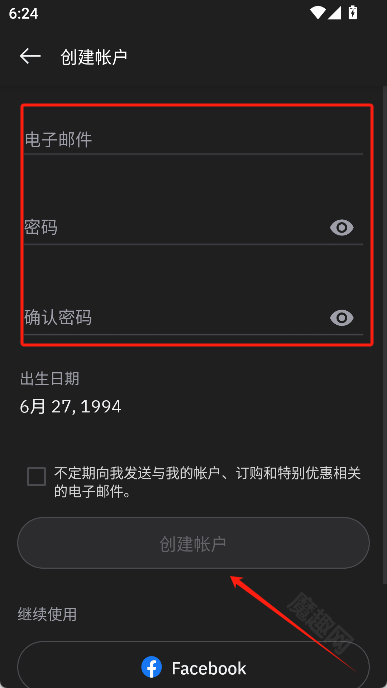 填入电子邮箱,设置密码,然后点击“创建账户”即可