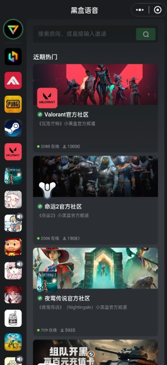 在手机端首页就能看到黑盒语音的热门房间,点击之后可以选择进入该房间。