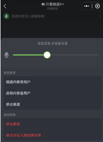 在语音互动过程中,支持对其他用户的输出音量进行调节。频道管理员拥有语音管理权限,具体可执行频道内静音、房间内静音及移出频道等操作;同时也具备房间管理权限,能够将用户移出房间,或移出房间并将其加入房间黑名单。
