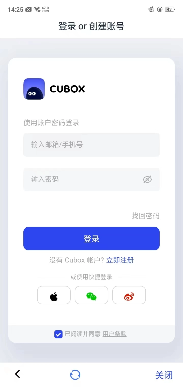 查看使用指南:首次登录时可以查看cubox手机版的使用指南。