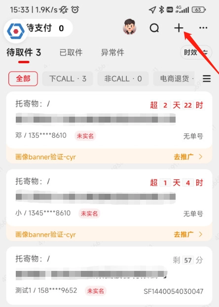登录成功后,操作步骤如下:点击界面右上角的“+”按钮,即可创建一个新的揽收任务。