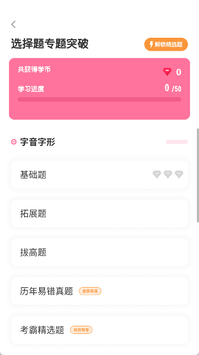 闯关练习题题库题量增加,更多同步知识点等你来背!