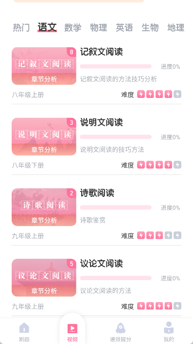 汇集名师真人讲解视频教程,对初中语文课本知识点进行深入浅出的剖析,配合习题练习,巩固所学知识。