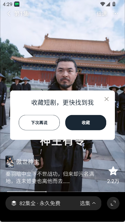 随便点击一个短剧就能进入观看界面,这时候可以对这部短剧进行收藏之类的操作。