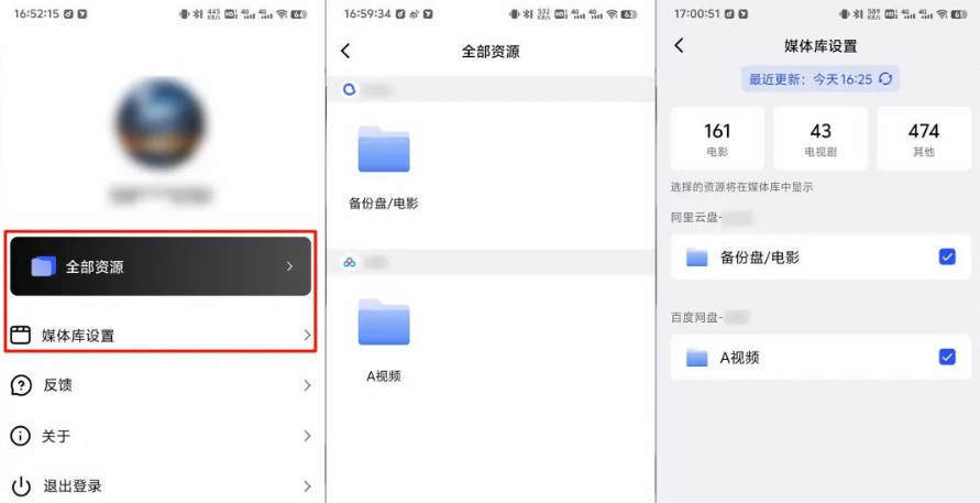 filmly目前暂不支持删除媒体库功能。若不想看到某个网盘的视频,可取消勾选该网盘对应的文件夹,这样就不会显示相关内容了。你可以通过「我的」页面中的「全部资源」和「媒体库设置」入口,进行查看与显示的相关操作。