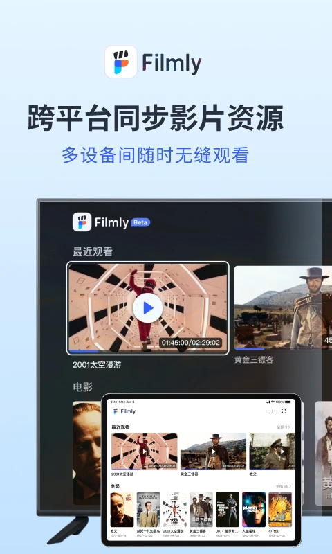 登录百度网盘账号,勾选相关协议并同意后,Filmly便会自动同步网盘内的视频资源。