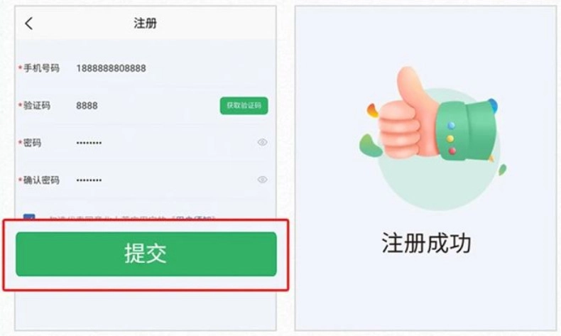 点击“提交”,完成注册