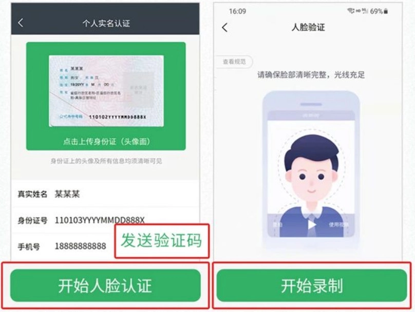 核对用户身份信息,点击“开始人脸认证”