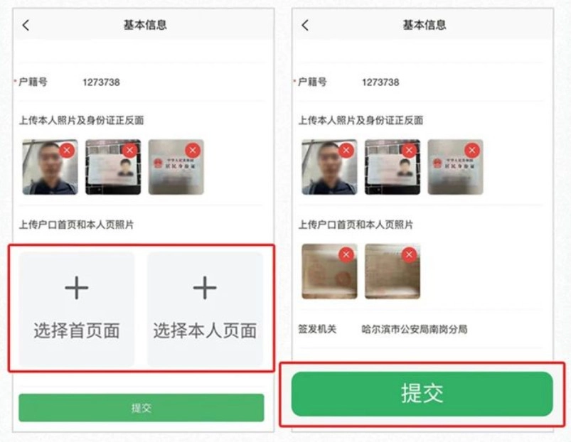 上传“户口照片”,点击“提交”