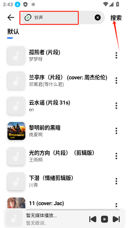 搜索歌曲:在搜索框里输入你想设为铃声的歌曲名字,找到后播放这首歌。