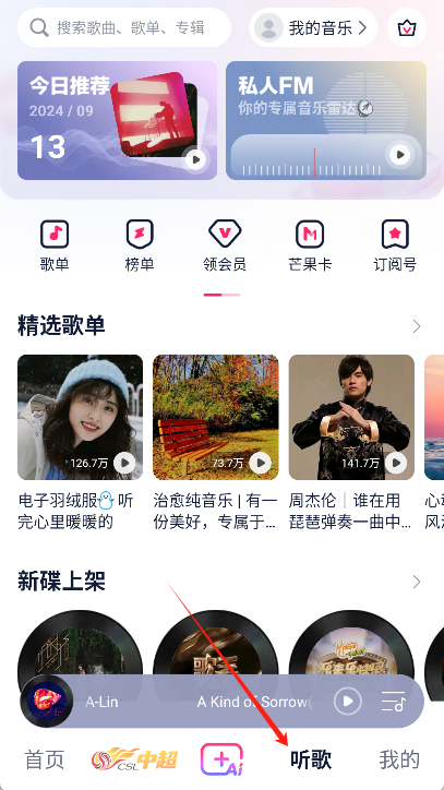 【热门推荐】在“我喜欢的”里开启听荐模式,AI推荐的歌曲就能更懂你的心啦;