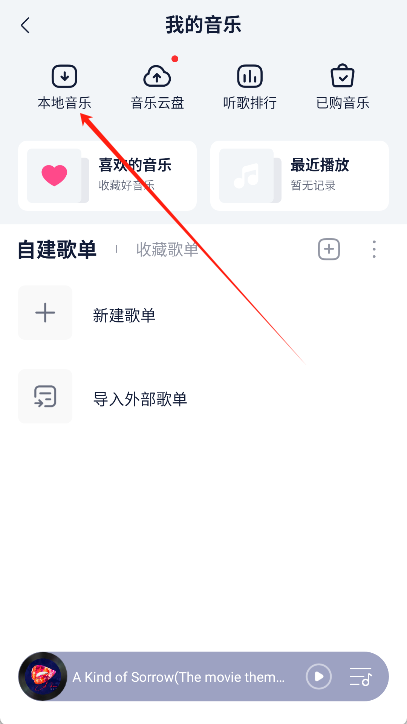 用户还能点击“我的音乐”,借助扫描本地歌曲的功能,把手机里的音乐文件导入软件来管理。