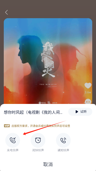 彩铃设置功能:用户可将自己喜爱的歌曲设为彩铃,该设置选项可在音乐页面中找到。