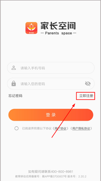 在【注册账号】页面,家长填写电话号码并接收验证码就能完成注册;要是家长已经有账号了,就不用进行这一步,直接到首页登录就行。