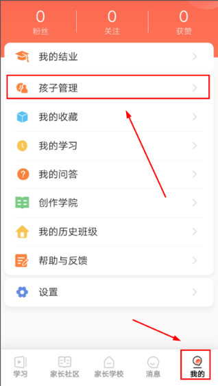 若家长育有多个孩子,可进入【我的】页面,点击【孩子管理】选项,再选择【添加孩子】,输入孩子所在班级的班级码,按流程重新完成入班操作即可。