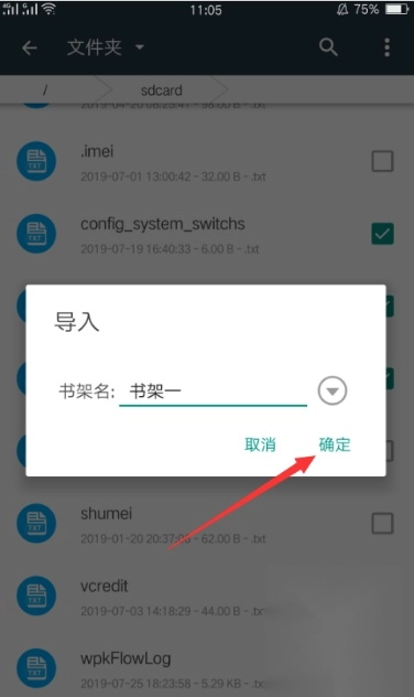 选好存储路径后,找到并勾选要导入的文件,接着点击下方的“加入书架”按钮,具体操作可参照图示。